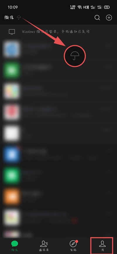 1、首先打开手机微信,通过消息页面的左上角,可以看到当前正处于青少年模式,点击【我】;