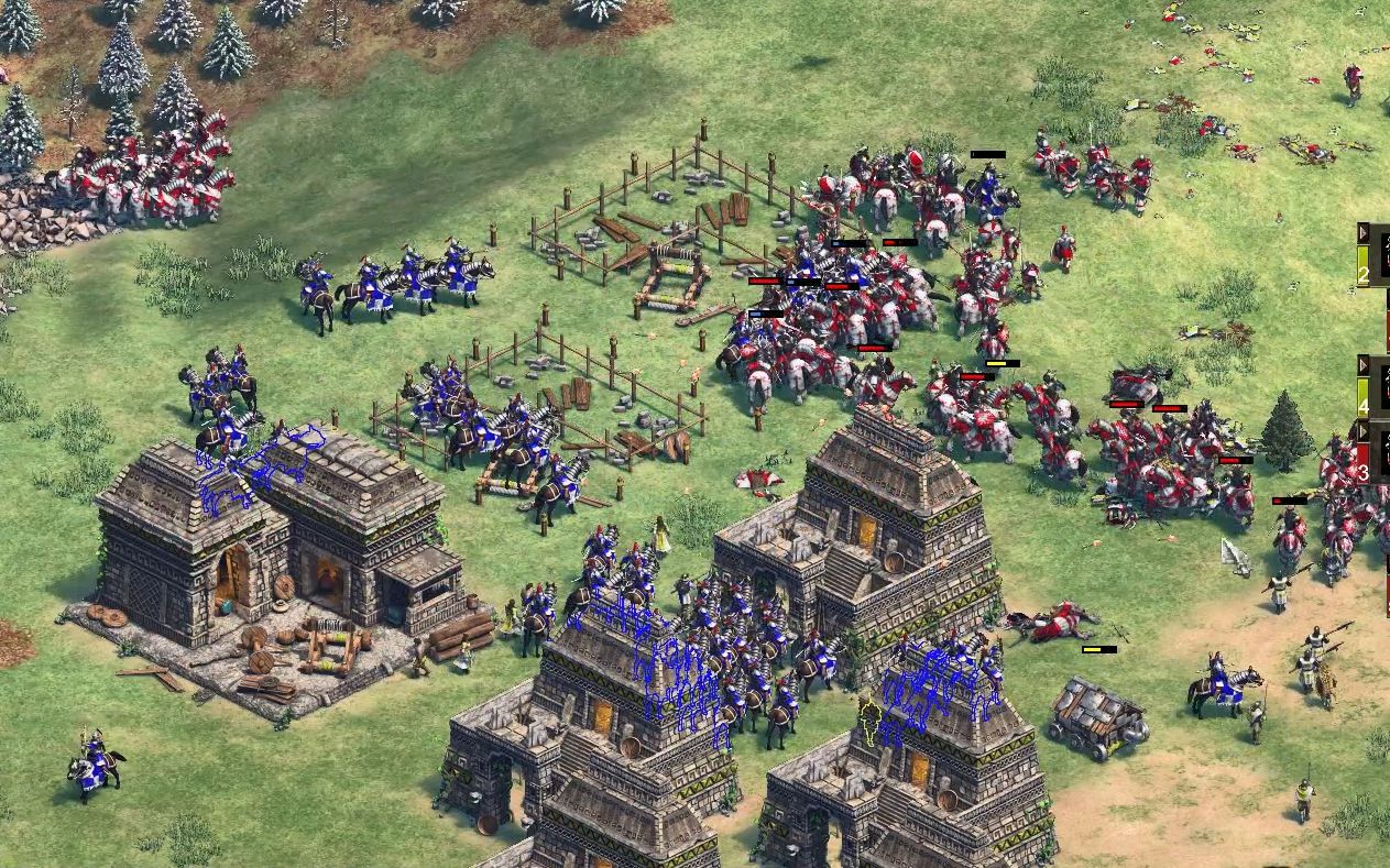 城堡—帝王过渡时期:此时应当集中资源推动进入帝王时代。若经济允许,应当生产更多装甲马弓手和骑士,并开始升级相关的技术。同时注意探索并打击敌方经济的薄弱环节。