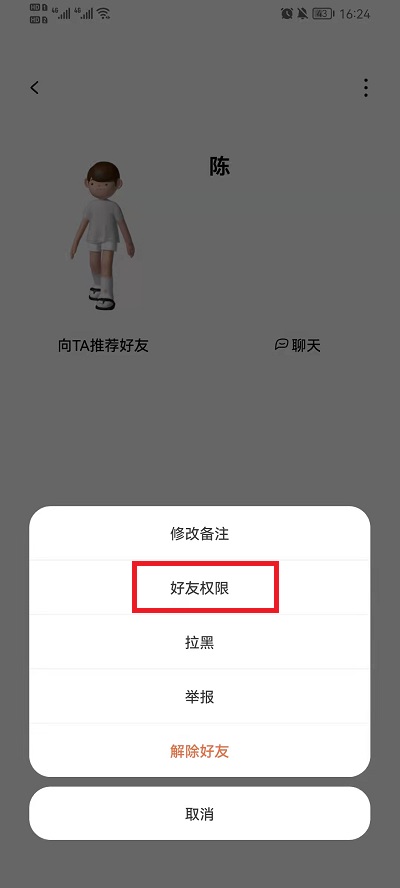 3、弹出的选项中,我们需要点击【好友权限】进入到该功能中;
