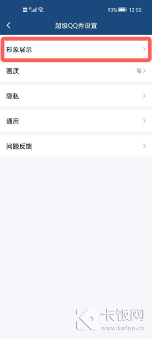 4、进入超级QQ秀设置后,点击【形象展示】设置;