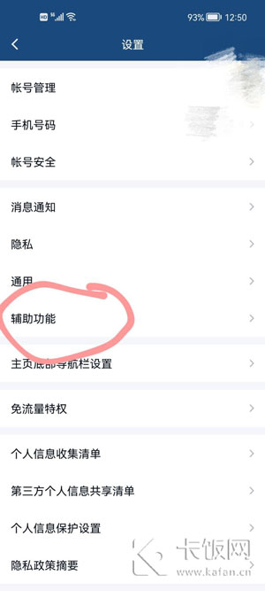 2、在众多的设置中选择【辅助功能】设置,点击进入修改;