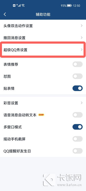 3、选择辅助功能下方的【超级QQ秀设置】;