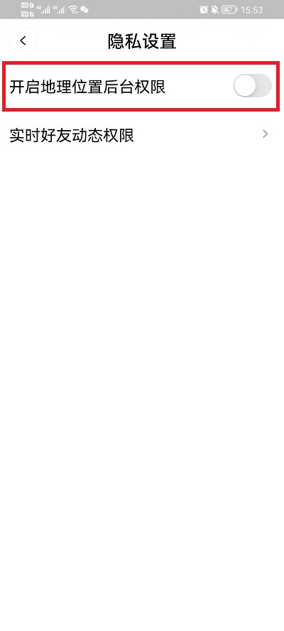 4、隐私设置中有一个【开启地理位置后台权限】点击关闭就可以取消定位。