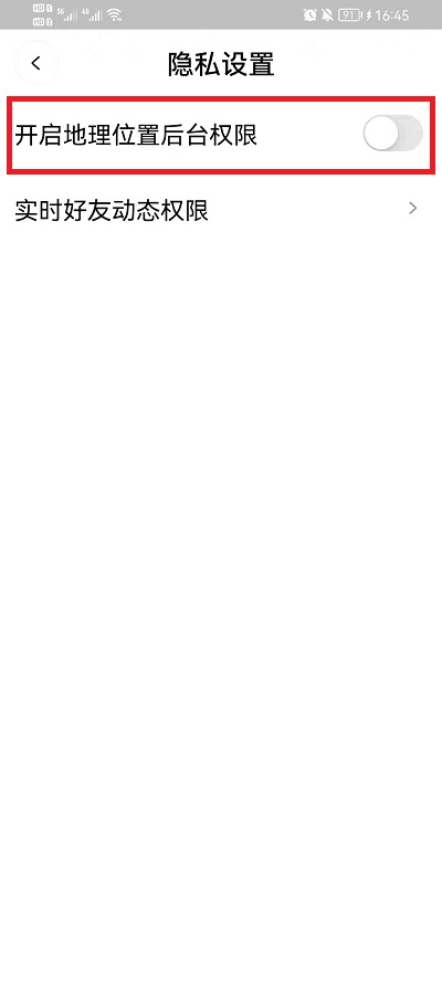 4、最后在隐私设置界面中,点击关闭【开启地理位置后台权限】功能按钮即可完成关闭共享位置的设置。