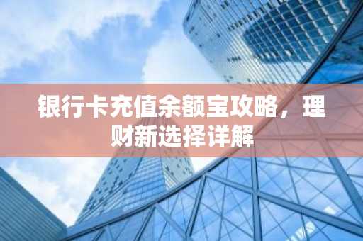 通过银行卡充值余额宝,用户可以轻松实现资金的增值和灵活管理,在理财过程中,投资者应充分了解余额宝的相关知识,合理配置资产,实现财富的稳健增长。