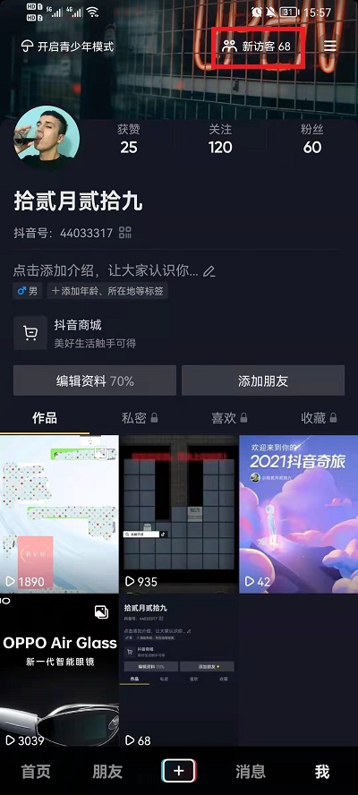 以上就是抖音怎么看访客足迹的全部内容,希望以上内容能帮助到朋友们。