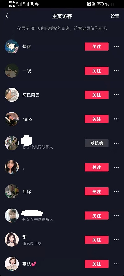3、在此功能界面中,我们就可以看到所有访问我们主页的用户。