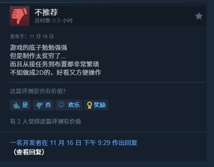 从玩家评价来看,该游戏的体验可能并不如预期那么完美,但游戏的实际体验如何,还需要玩家亲自尝试才能得出准确的结论。