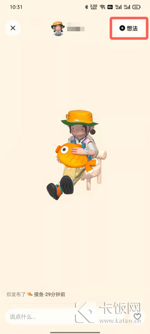 2、当你的形象放大之后,再点击右上角的【想法】;