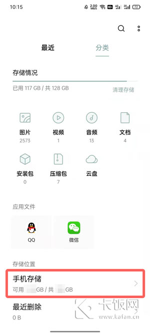 3、使用手机自带的文件管理应用,或者使用第三方文件管理应用,打开【手机存储】;