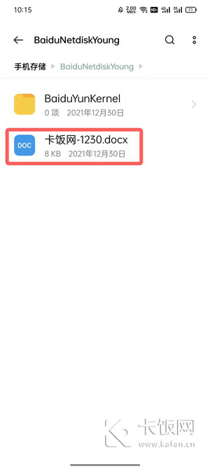 4、在手机存储文件中找到【BaiduNetdiskYoung】文件夹,点击进入;
