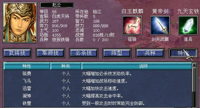 体质和智力:虽然赵云以用兵和力战见长,但体质与智力的提升,亦能增强其生存能力和武将技能效果。