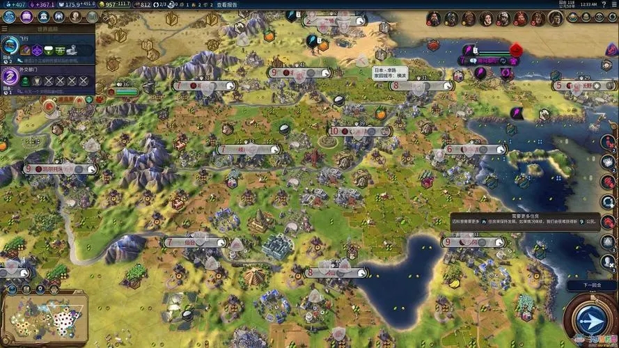 随着游戏的进行,优化城市使它们更高效是提高整个文明竞争力的重要方式。根据周围的资源和地形,决定每个城市的发展方向,是专注于文化、科技、贸易、军事还是宗教。对每座城市的发展做出精确的规划和管理。