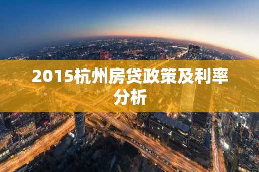 2015杭州房贷政策及利率分析