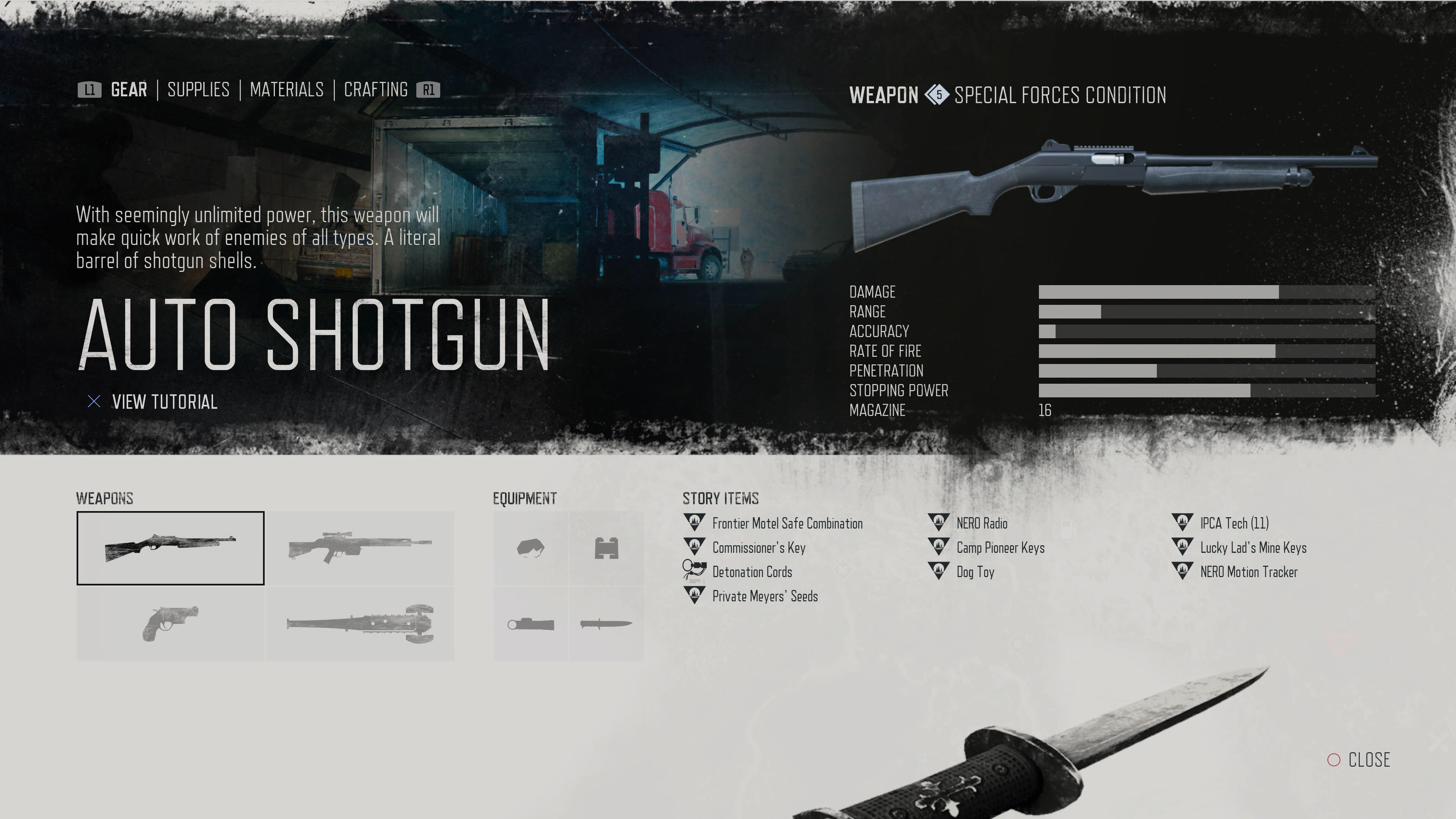 近战武器切换:通过按下“R2”即可使用当前装备的近战武器打击敌人。更换近战武器需打开物品轮盘(按住“L1”),使用右摇杆选择你想要的近战武器。