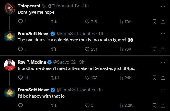 网友们在评论区内纷纷表示“不要给我希望”“《血源诅咒》不需要重制版或者重置版,只需要60帧就好了。”也有人表示“他们实际上每年都会进行一次更行,不会在其中投入太多库存。”“说实话,这只是个巨大的应对措施,服务器应该与公告无关。”