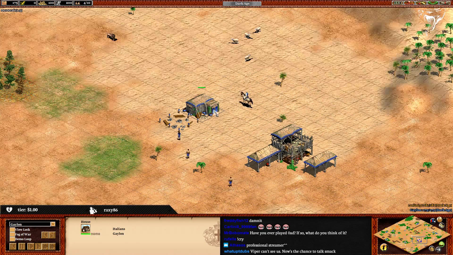 游戏开始时,玩家应该先分配三个村民去收集羊或猎物上的食物,一个建造房屋,防止人口上限的达成,余下的村民可以去收集木材。随着资源的积累,需逐渐增加挖矿和采石的村民数量,以准备后期的需求。