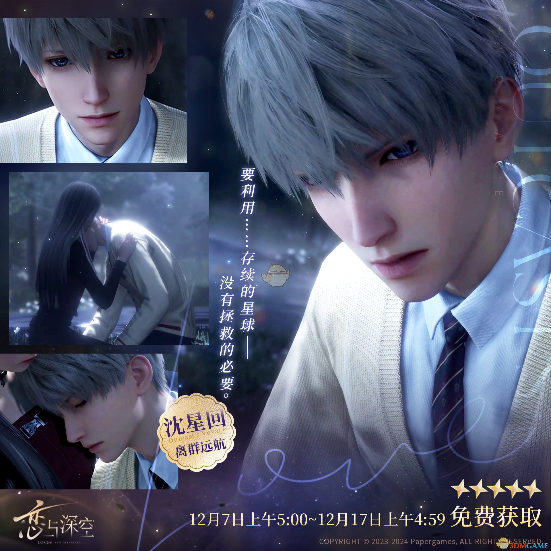 从12月7日上午5:00至12月17日上午4:59,参与“离群者的远航”活动,并完成所有的访查任务,即可免费领取本次主线分线的五星思念——「沈星回·离群远航」,这一奖励将为您带来丰富的游戏体验。