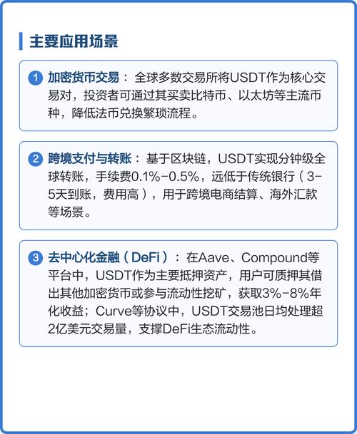 2、流动性:由于USDT的广泛接受和流动性,它成为加密货币交易中的一种常用支付方式。