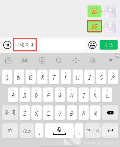 3、然后点击右侧的【发送】按钮,我们可以看到发送出去的文字消息就变成了糗大了表情包;