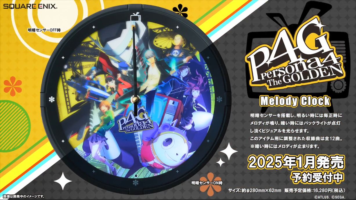 SE官方宣布推出《女神异闻录4:黄金版》的旋律时钟,目前这款旋律时钟已经开启预定,售价16280日元(约779元人民币),时钟预计将于2025年1月31日正式发售。