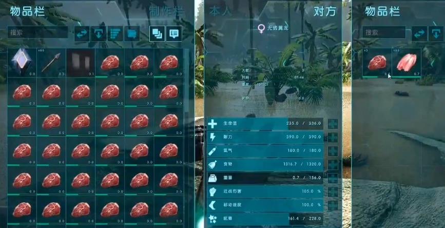 喂食: 根据不同恐龙的食性准备适当的食物。食草动物通常喜欢吃浆果,而食肉动物则更喜欢新鲜的肉或特殊的食物,如科加肉。将食物放入恐龙的物品栏中,就会自动开始喂食过程。