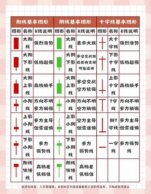 1、认识K线基本形态:K线图由开盘价、最高价、最低价和收盘价组成,阳线表示价格上涨,阴线表示价格下跌。