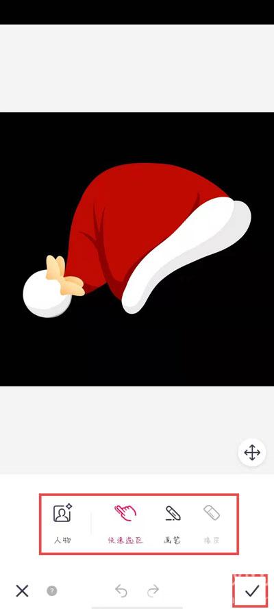 4、使用下方的功能,将圣诞帽的部位快速选中,点击右上角的【√】确定;