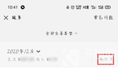 4.在账单页面,在上方支付、收入的最右侧,点击【统计】功能;