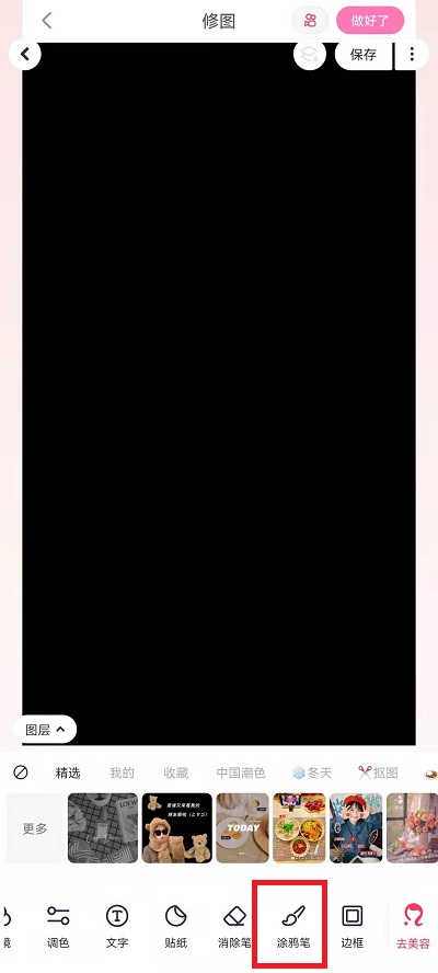 3、在界面中向左滑动最下方的功能,然后在其中找到【涂鸦笔】切换到涂鸦笔后进行画画;