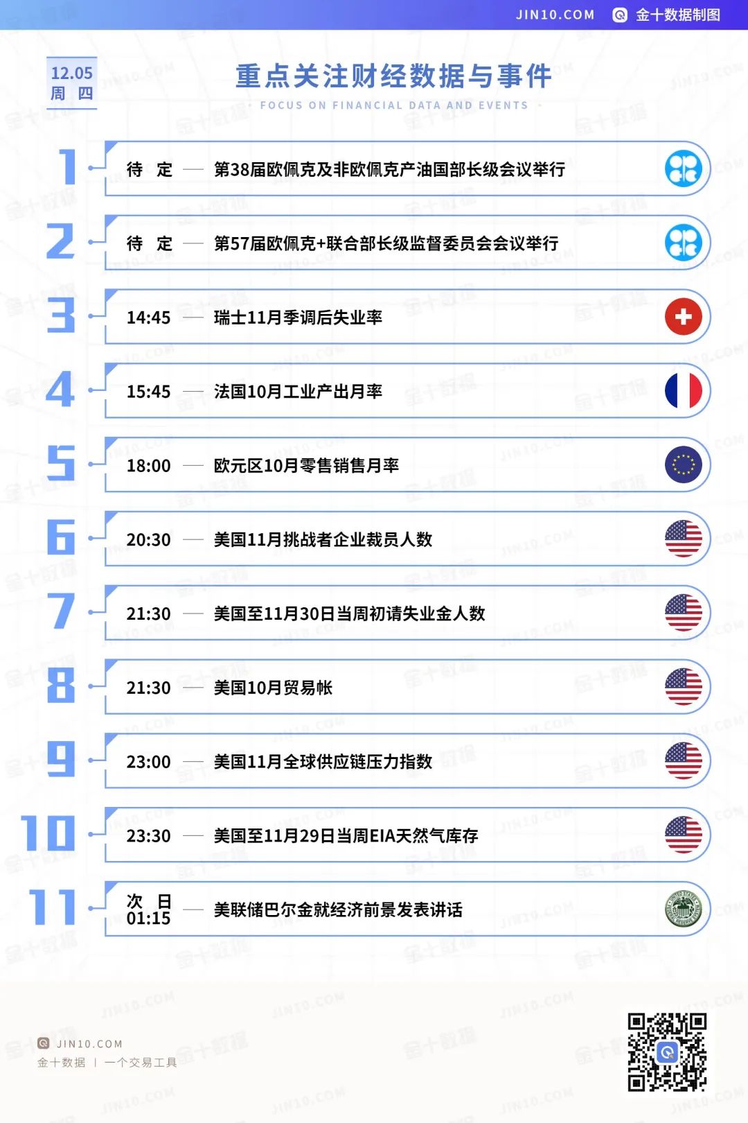21点30分,美国将公布至11月30日当周初请失业金人数以及美国10月贸易帐;