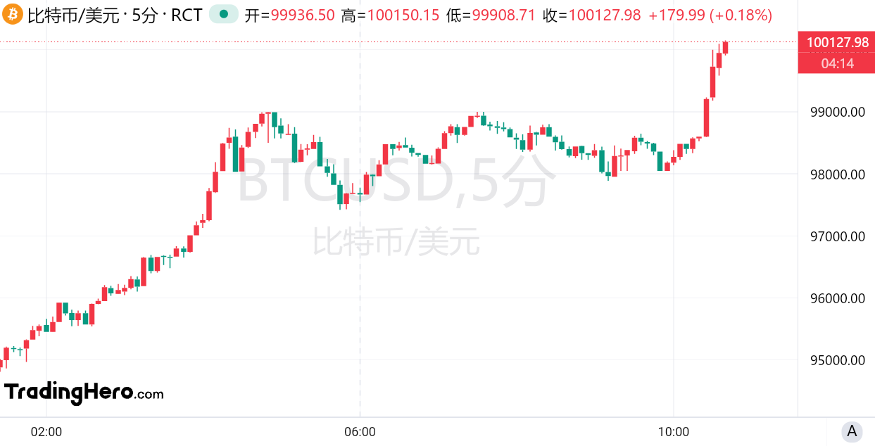 周四亚盘,比特币冲上10万美元大关,此前自特朗普11月5日赢得大选以来,比特币价格上涨了40%以上,斩获逾3万美元的涨幅,今年迄今涨幅约135%。