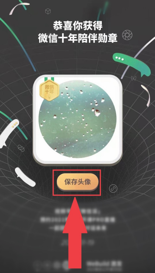 6、然后可获得微信十年陪伴勋章,点击【保存头像】,可将勋章头像保存到手机相册。