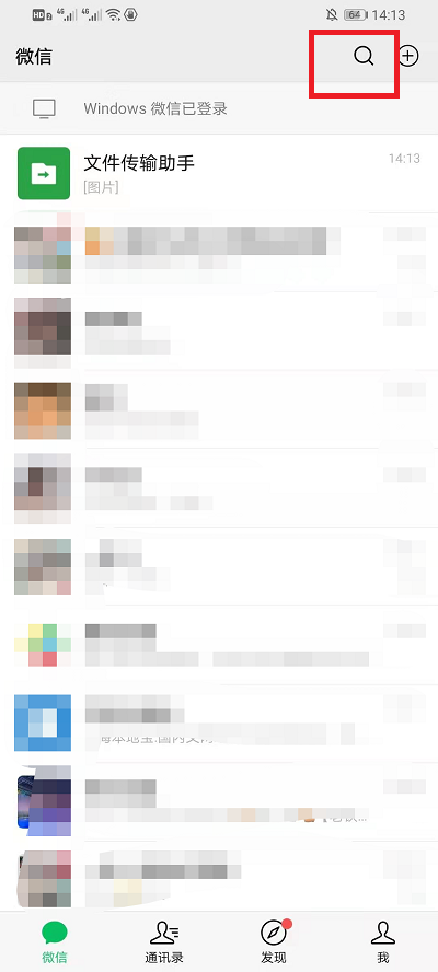 1、打开微信,点击微信的右上角的【放大镜的图标】,点击进入到搜索界面;