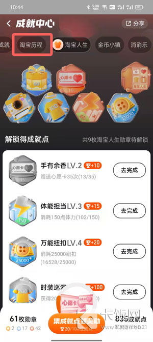 3、然后在成就页面的上方,切换至【淘宝历程】;