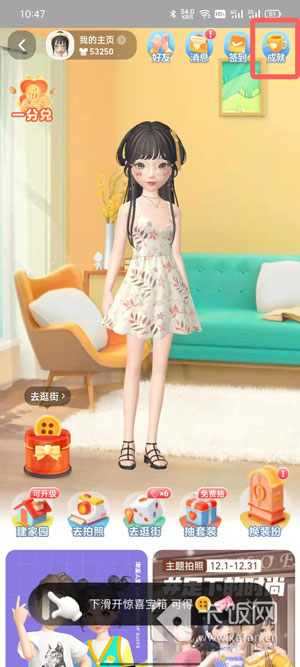2、进入淘宝人生之后,点击右上角的【成就】;