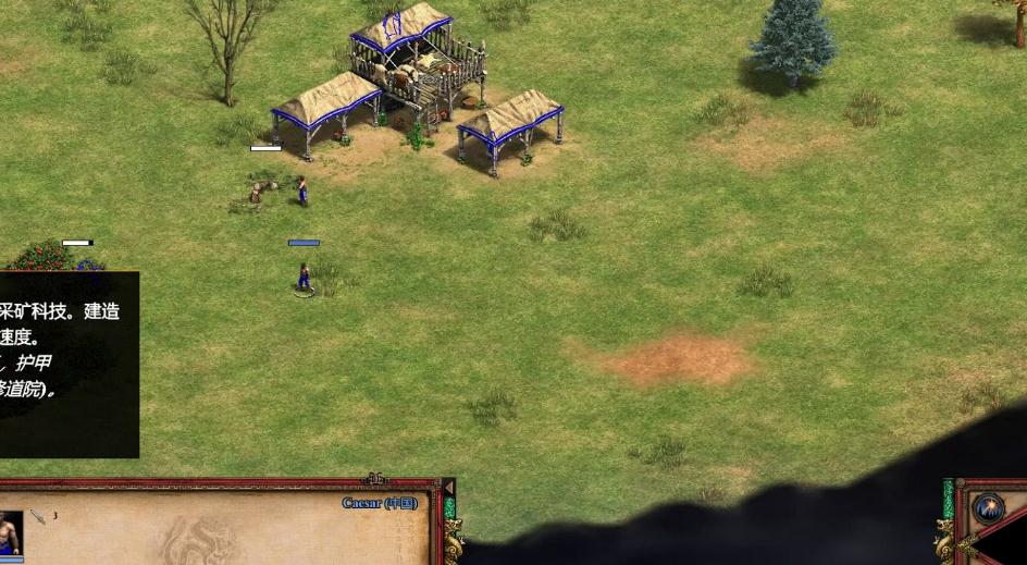侦察与初始布局:使用你的斥候骑兵或工人查看周围的地形和资源,并尽快找到羊、野猪和其他资源点。