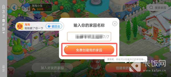 5、创建我的家园:点击后输入自己家园的名字,点击【免费创建我的家园】即可;