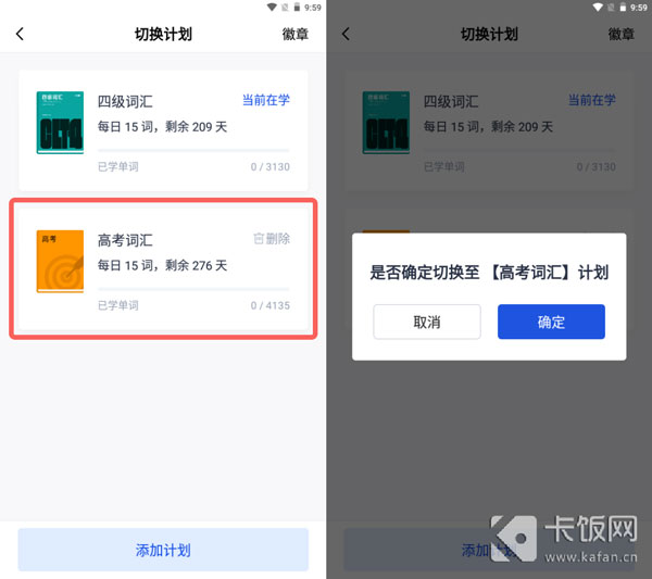 3、如果计划中有需要学习的单词书,点击直接切换即可;