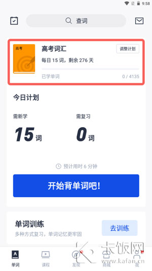 7、更换后在首页通过上方的单词书查看正在学习的计划。