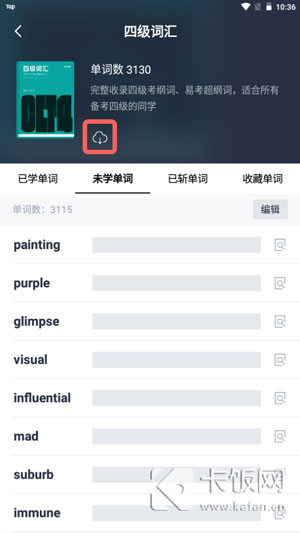3、等待下载完成后,退出再次进入,单词包的右侧将不再显示下载按钮,就可以在离线状态学习单词;