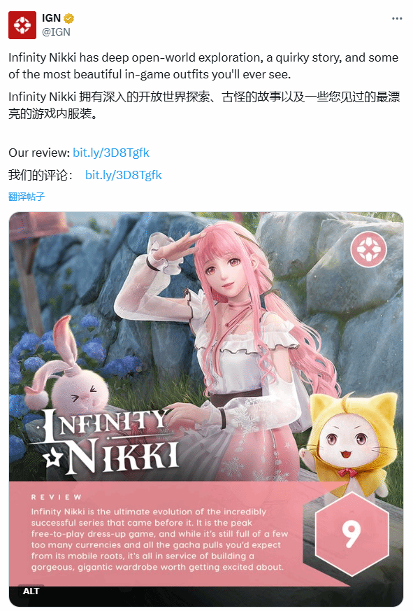 IGN大赞《无限暖暖》:玩家心中的佳作,必玩之作!获9分!