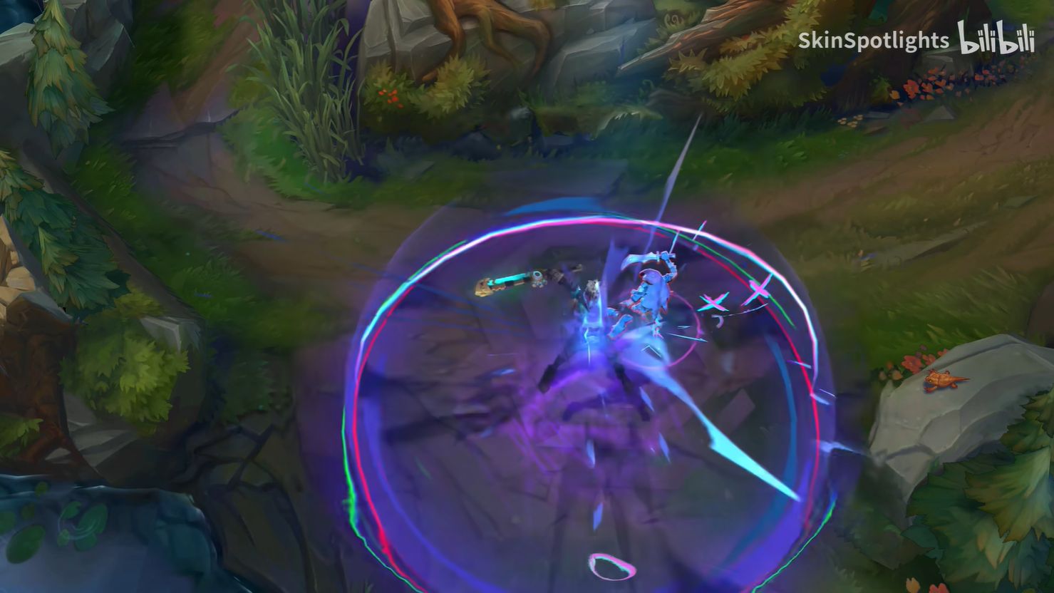命运让艾克与曾经的家人站在不同立场,并相遇于宿命战场,艾克的最后一战交织着过去与现在、理智与疯狂。因为艾克使用了Z型驱动装置的力量回溯时间,所以在回城时,艾克会跳上滑板穿梭于时空中。艾克的技能特效充满着涂鸦风格,释放时空断裂时,周围伴随着蓝色与紫色的涂鸦表情和符号。