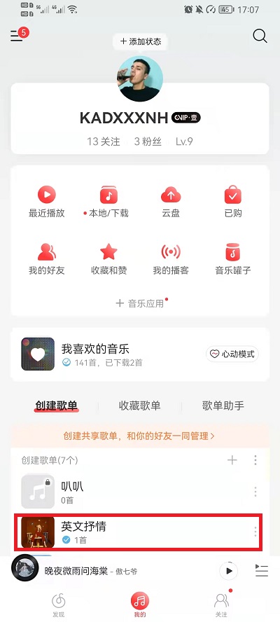 2、然后需要找到想要删除音乐的歌单,然后点击进入到其中;