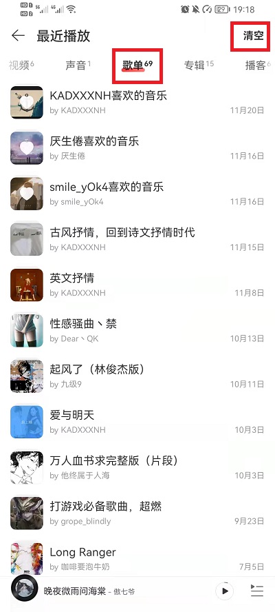4、然后点击右上角的【清空】就可以删除所有最近播放的歌单。