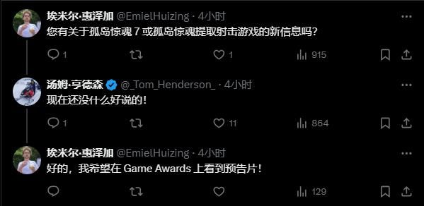 有玩家好奇询问关于《孤岛惊魂7》的相关消息,Tom Henderson表示目前尚无可透露的详细内容。