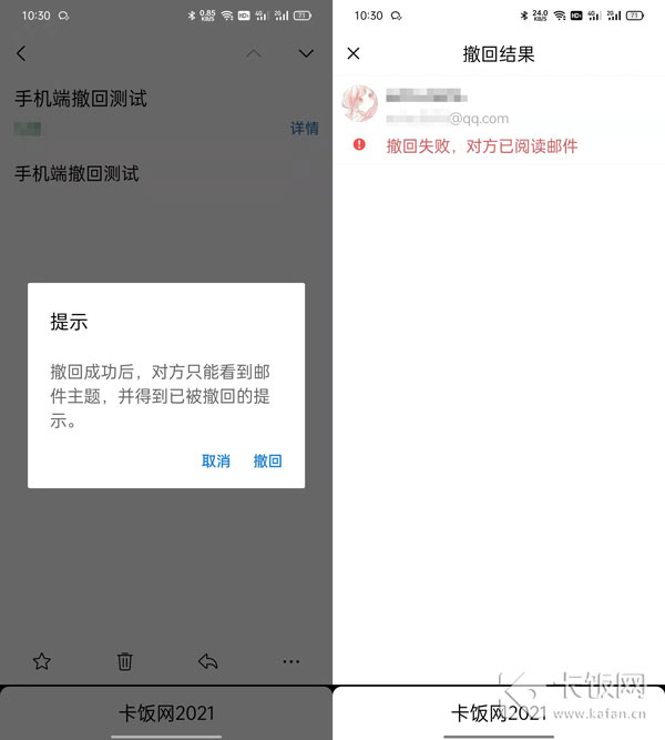 5、最后根据撤回提示查看对方是否已读,当对方已阅读、删除邮件会出现撤回失败情况。
