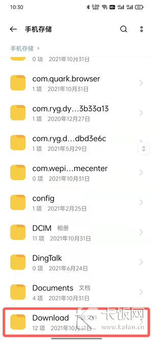 3、然后在手机存储路径下,上下滑动找到【Download】文件夹;