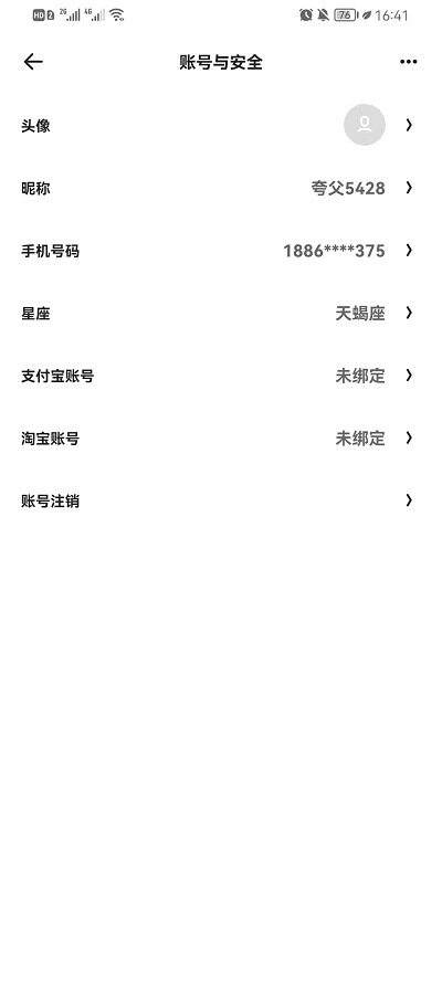 3、在个人信息之中,我们就可以针对自己的头像、昵称、手机号、星座等一系列个人信息去进行更改。