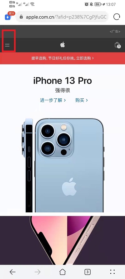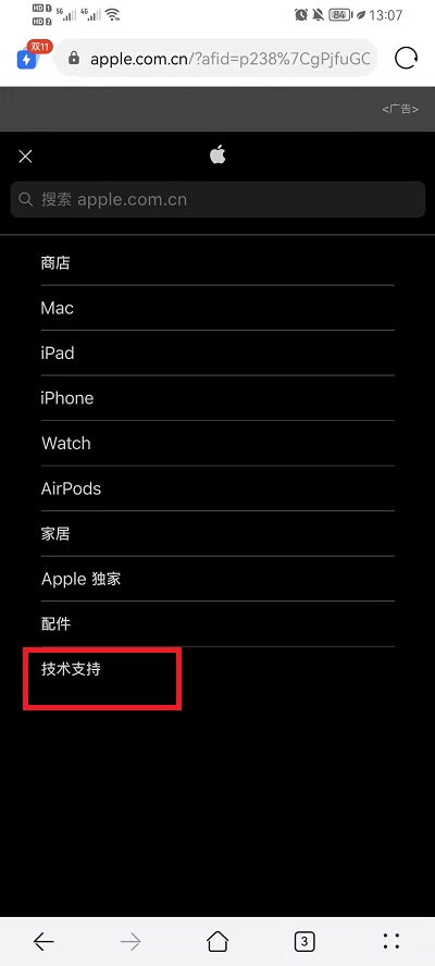 1、首先需要打开手机的浏览器,然后搜索【Apple】,在浏览器首页界面中,点击官方网站,进入到网站界面中;